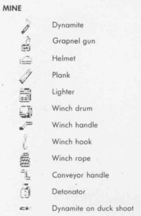 - Game 3: The mine is a so to speak a jump&run game, in which different items are collected, Geiger counter (shows the closeness to the bomb), inventory and word list, time display running backwards.