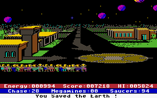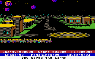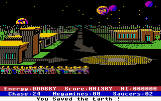 All other graphical objects in the game are displayed using corresponding on-screen symbols. This also applies to the mega-mines, which can only move jerkily in increments of 8 pixels (or multiples thereof) towards Earth.