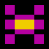 The spaceships and their missiles are represented by monochrome sprites (sprites 0 and 1 for friendly lasers, sprites 2 and 3 for enemy lasers, sprite 4 for the friendly spaceship, and sprites 5–7 for the attackers). Interestingly, the sprites in the game are consistently stretched to twice their original size in the X direction, so that while their definitions require little memory, the horizontal resolution is 2 pixels instead of 1. To detect collisions between the spaceship and its adversaries, and to detect laser projectile hits, the game relies on the collision detection of the VIC (registers $D01E and $D01F).
