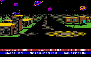 In the game "Astro Chase", the player pilots a spaceship through near-Earth space, disabling enemy nuclear warheads that are descending toward Earth and threatening to destroy the planet. Meanwhile, he must defend himself against enemy spaceships sent by the attacker to protect these "mega-mines".