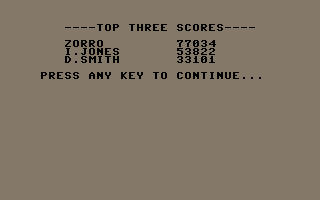 Since the game completely forgoes the use of sprites, there is no hardware support from the VIC for detecting collisions between the player character and their opponents. The software-based detection system implemented as a substitute is remarkably unreliable: