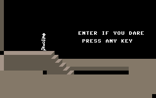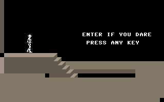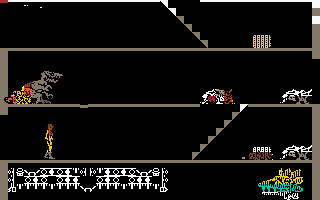 Alternatively, a new game can be started. In this case, the difficulty level must be set using one of the number keys 1 to 8 . This setting determines the number of enemies lurking in the temple corridors, waiting for the explorer: While at the easiest difficulty level "1" only an occasional (usually small) opponent appears, at the highest level "8" the game is sometimes like a visit to a zoo.