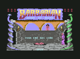 TheRyk: "Never slaughter was more beautiful on the C64. Considering violent game content on modern systems, it is hard to believe that the "head off" was shocking enough in the 1980s for the game to be banned in Germany. 'What are you doing with that sword, speak!' shouted many parents when they saw the sword blow that decapitated the opponent. This often resulted in a Barbarian ban. That made the game even MORE fun. Besides this I have to add that the 6-minute game-music (see above) is super-class and adds up perfectly to the atmosphere. Also the opponent's AI, which gets better level by level, is very convincing. Nothing's better, 10 points !"