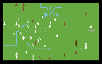 Black Hawk is a graphically simple Shoot'em Up. One unique feature is that the game is split into two modes: a bomb throwing mode, in which the player has to try to hit as many targets as possible and at the same time not let any enemies pass, and a close combat mode, into which is switched as soon as an enemy has passed through. The player can only lose a life in the close combat mode. The aiming in the bomb throwing mode is rather unusual concerning the controls, but solved very practically.