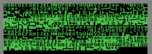 A character set is a body of information that describes the visual appearance of up to 256 characters: Since each character take 8 bytes of information, a full character set requires 256 × 8 bytes = 2 kB. While the text screen system was originally designed to provide the hardware facilities for a "console" text screen, it is also widely used along with user-supplied "character" sets to form graphics in games, demos etc.
