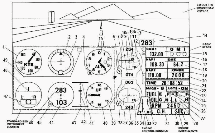 1. Airspeed indicator (knots) 24. Fuel display gauge