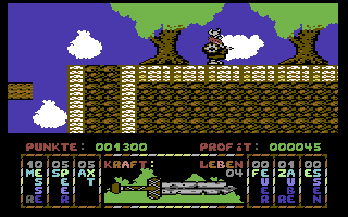 - After the title screen, a map showing eight islands is displayed. Every single one represents a level. The level is selected via joystick: you move the cursor (sword) onto an island press fire. The game starts with the Western island. It is the only island you can access without a password. After a level is successfully completed, the player gets a password for the next island. The levels succeed the first one clockwise around the map.