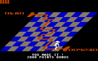 Stephan64: "Exactly what you'd expect from a game from 1983: simple graphics, basic sound, and a clever gameplay idea. Levels 3, 5, and 6 (where the playing fields reset to their original state when Edison enters them again) are particularly challenging when playing against opponents... but 7 points is appropriate for a game that's still fun after all this time."