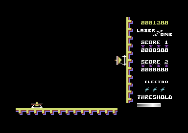 The Empire of Irata and the Realm of Zzyzax have allied and attack the outposts of Terra with skull, bug and other ships. To defend the attacks, laser zones were erected, in which you find stations that consist of two computer-controlled plasma beams. Now you could say: "Great, let the computers destroy our enemies, the Earth is safe.". But the lasers need to be maintained and exactly for this purpose you are in station 106-A. During the maintenance the control computer breaks (these things always do that in the most unfitting moments) and as coincidence would have it a short time later hordes of Iratian and Zzyzaxanian spaceships materialise. Now you have to take over the controls manually to defend this attack. This is obviously not your day....