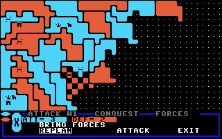 Low: Every attack in which the attacker has at least the same forces as the defender is automatically successful. Attacks at a stronger defender are impossible. The computer plays best with this setting and the game needs utter concentration.