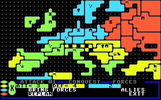 The computer opponent plays equally good or bad on all levels, with this you can only set a handicap for the start for one side or the other, this is who is allowed to choose the first province, who has the first attack and how many extra provinces one gets.
