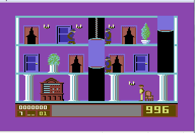 Every now and then you will see a bar. As you should also search this facility, you will inevitably get in contact with the barkeeper, who invites you for a drink. You can choose between milk, beer and whisky. With the joystick you choose something and confirm it with the fire button. If you choose a drink that contains alcohol, he will give 2 numbers of 2 the floors where the directions are hidden (if you didn't find them yet). Keep in mind, that alcohol while on duty is not good...