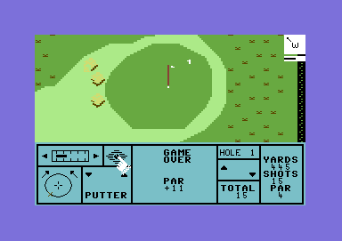 Nick Faldo is one of the world's best English golf players. In this game, a golf match strechting over all 18 holes is simulated with Nick as a main person in the golf club "Royal St. George's Golf Club" in the English town Sandwich, where already World Cups have taken place and where people played for golfer honour and a prize money of 5 pounds in 1872. All difficulties of the original course are built in. The wind speed is not only taken account of, but also changes. The course is about 900 screens big. If required, a total overview can be shown. The simulation is completed controlled by joystick.