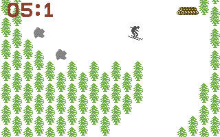 You take part in the Olympic Winter Games in Sarajevo in 1984 as an athlete. There are altogether three disciplines. At Slalom you need to absolve the parcours error free as fast as possible. In Ski Jump the furthest jump with a standing landing wins. In the supreme discipline - Downhill - you have to reach the finish line without a crash within under 40 seconds. For each race there are points, that are added at the end. The computer evaluates the total score correspondingly. The player with the most points wins the game.