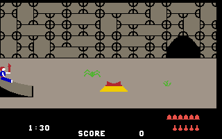 - Those who want to achieve a high score without risk and have enough patience can repeatedly climb to the lowest platform of the temple in the first level, destroy all the spiders and snakes in the chamber accessible from there, and leave the temple again just before their air runs out.