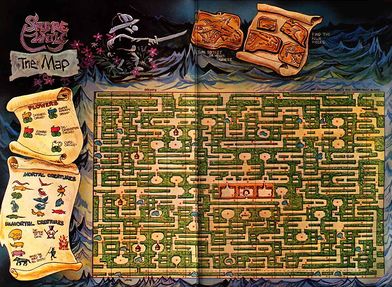 Sabre Man must explore a jungle labyrinth to find all four pieces of a magical amulet. Hindering his progress are the maze’s assortment of antagonists, including deadly spirits and the indestructible Saber Wulf. Helping Sabre Man are magical orchids, bonus items, and the occasional extra life. The game ends when Sabre Man has reassembled the amulet and exited through the cave.