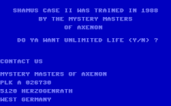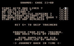 In the CSDb there are a large number of Cracks with a Trainer function. The most extensive customization options are offered by the version "Shames: Chase II +6D" by Nostalgia (first image in the gallery below).
