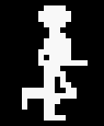 Pressing the fire button on the joystick starts the game. Control is achieved solely by moving the joystick up, down, left, or right; the fire button and keyboard have no effect on controlling the character. The character moves back and forth within an invisible grid along fixed paths between a small number of possible locations (image on the left). Even if the joystick is only briefly moved to the right, for example, the character will move to the grid point to the right, which is colored purple in this image; only then is the joystick checked again and can trigger the next movement.