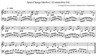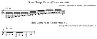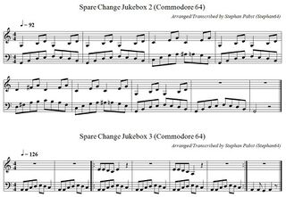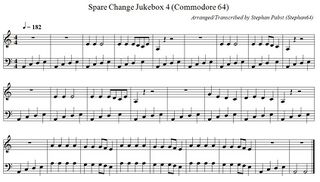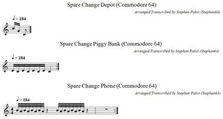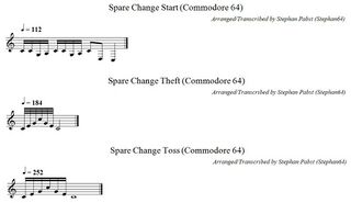 For creative reuse, the sheet music for all jukebox melodies and all sound effects is also available as a PDF document (File:SpareChange Theme PDF.pdf) and in ABC musical notation (File:SpareChange Theme.abc.txt).