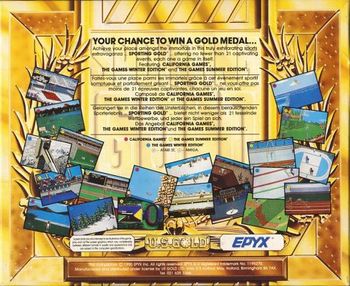 The computer games collection Sporting Gold was issued by U.S. Gold for a price of about 45 DM datasette or of 55 DM on diskette in 1990. 3 sports games by the commpany Epyx were contained in this collection.