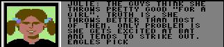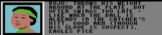 Rockford: "The game scores by its good appearance and likeable atmosphere. From my point of view it is one of the first games that give a personality to the players of a team sport. With its easy controls it is quickly taught to a friend, but for people without friends too easy. Very little control in batting, punts are not intended in the game. For a baseball match alone I rather stay with Hardball, but in twos it is fun. My vote is therefore the mean of 6 points for the single player mode and 8 points for the game played in twos."