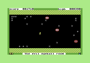 You are Tazz, a little man with a pistol and you are in a room, the walls are nearing from above and below. But you are not alone, there are between 20 and 230 (depending on the romm) here, additionally there are some evil creatures chasing you. If you make it to shoot all stationary bugs and then leave the room before the walls close, you will get into the next of altogether 20 rooms. After every second room you reach a bonus room.