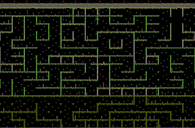 - If the astronaut starts flying at the far right edge of a room without platforms, he cannot reach the next higher rooms, but instead gets stuck in the border of a screen further to the left — fortunately, he can quickly free himself from this. And some passages open only one way after being shot by the sphere, forcing Charlie to squeeze through a wall — and being catapulted through the maze if he jumps: