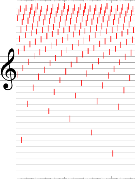 In this representation, natural notes are shown in their exact position; semitones are shown midway between their adjacent natural notes (for example, G sharp midway between G and A). For all other notes, the vertical position is determined by the exact interval of their frequency from the next higher and next lower natural note.