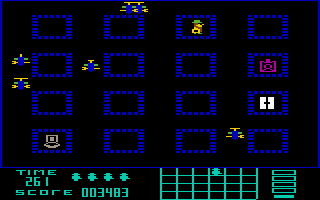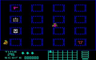 During the game, the player simply needs to determine the direction in which the spy should move — either by moving the joystick in the corresponding direction or by using the A (up), Z (down), CRSR ⇓ (left), and CRSR ⇒ (right) keys.