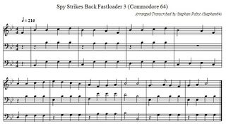 During loading, three three-part melodies shorten the waiting time (second row in the gallery). For creative use, the sheet music is also available as a PDF document (File:SpyStrikesBack Loader PDF.pdf) and in ABC musical notation (File:SpyStrikesBack Loader.abc.txt).