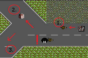 - Over the stone bridge the way leads directly to Timbone, shoot the gang car with double-rocket (press fire button 2x).